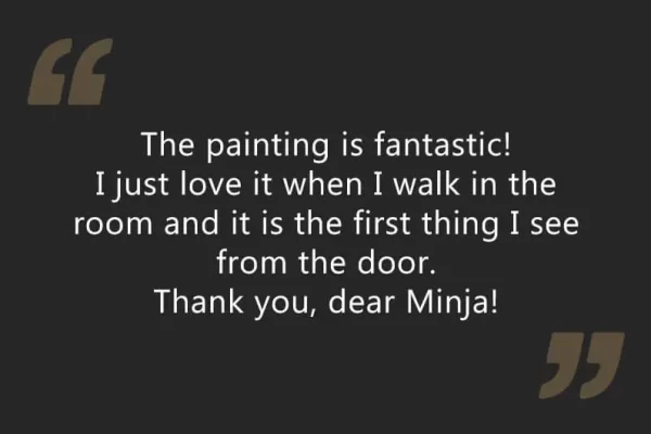 After you send me several paintings that you like, mine or some other artist’s, I will suggest a few motifs that I think would look perfect in your interior, taking into account its style and colors as well as your preferences.
