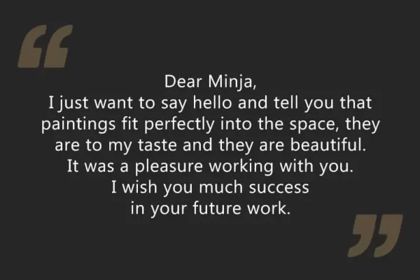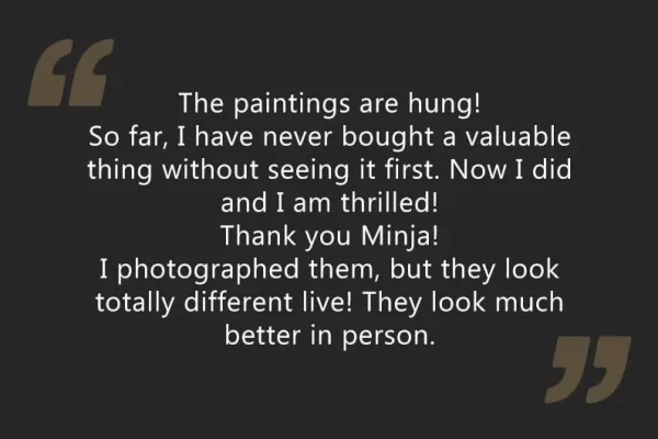 With each painting, you receive a certificate of authenticity. Before delivery, I carefully pack each painting in crackling foil, and if necessary in corrugated cardboard – if it is sent by courier services. It is possible to pick up the painting in person in Belgrade.