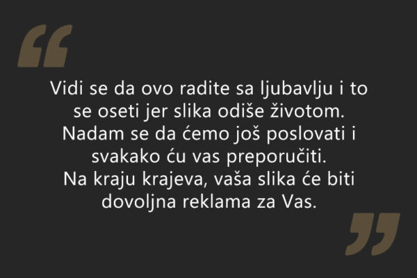 Nakon što je slika gotova i od vas dobijem potvrdu da ste zadovoljni i da ona odražava vaše želje i očekivanja, predlažem vam ramove za koje smatram da bi odgovarali slici i dodatno je istakli i oplemenili.