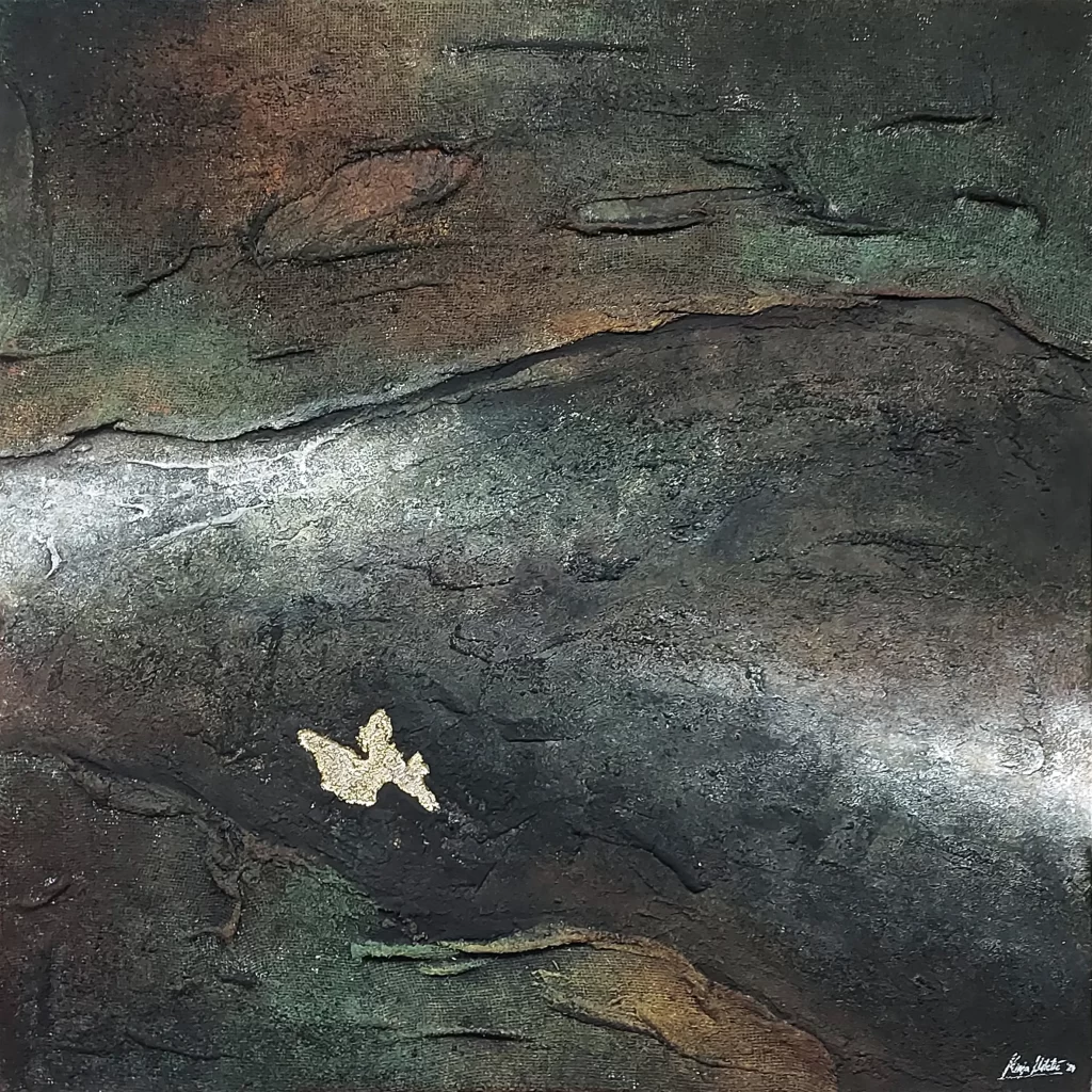 Prvo od sedam apstraktnih dela u okviru koncepta „Metamorfoza uma“ koji predstavlja istraživanje emotivnih i psiholoških faza kroz koje individua prolazi tokom suočavanja sa mentalnim, emocionalnim i fizičkim izazovima. Umetnica se bavi unutrašnjim svetom, prikazujući apstraktnim slikarskim metodama kako ljudski um može da se menja, raste i evoluira, čak i kroz najdublje borbe i patnje. Na taj način poziva posmatrače da se povežu sa sopstvenim emocionalnim iskustvima, podstičući ih na refleksiju o vlastitoj unutrašnjoj metamorfozi.