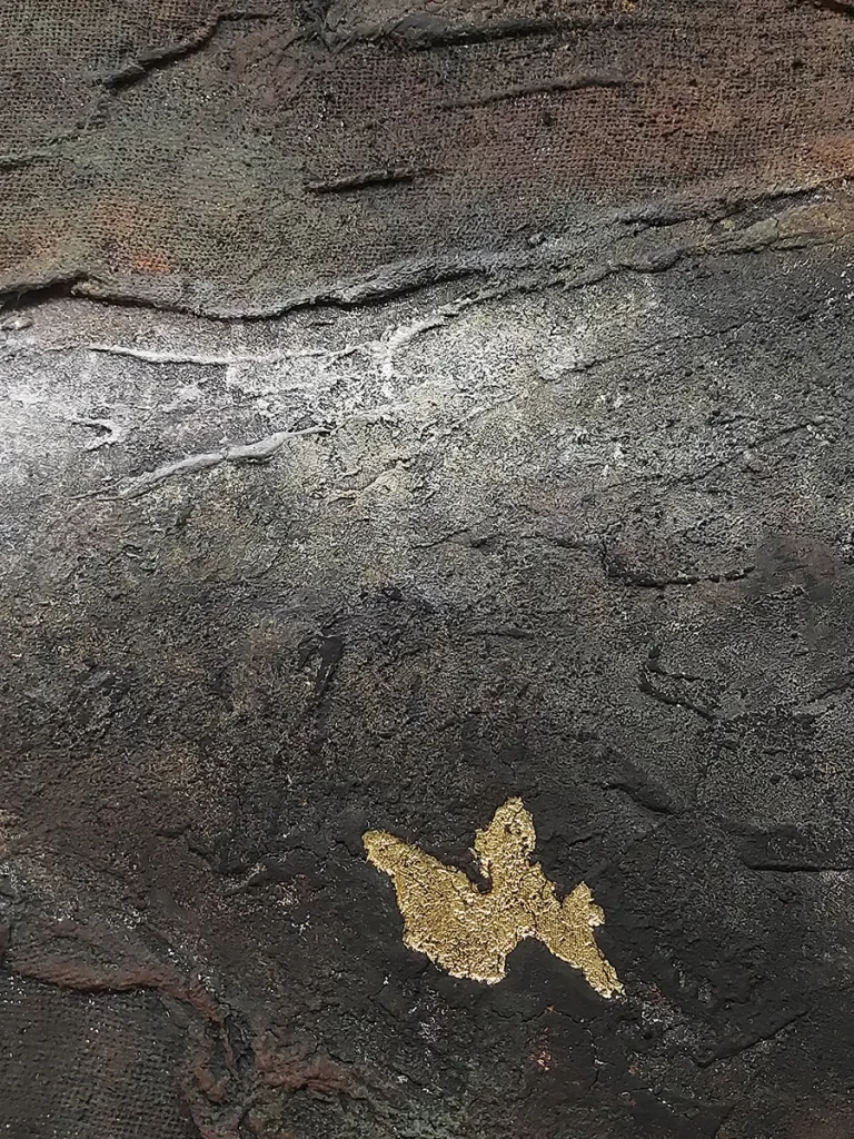 Naziv svake slike označava jedan od ključnih stadijuma u procesu lične borbe i transformacije. Svaka faza odražava specifične psihološke aspekte: od prepoznavanja problema, njegovog prihvatanja, preko borbe i razumevanja, do procesa isceljenja za koji je potrebno održavanje kako bi se došlo do finalnog preobraženja. Ove faze su prikazane kroz apstraktne forme, bogatu teksturu i boje koje odražavaju unutrašnju dinamiku ovih emocionalnih stanja. Zlatni detalji dodaju dimenziju svetlosti, nade i potencijala za isceljenje, dok reljefna tekstura slika poziva posmatrača da se fizički poveže sa umetničkim delima, doživljavajući ih ne samo vizuelno, već i taktilno.